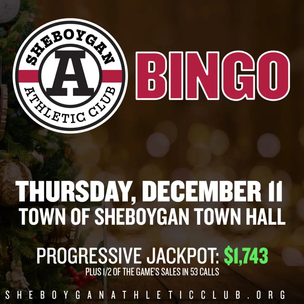Join us for the next Sheboygan Athletic Club Bingo on Thursday, December 11 at 6:30 PM at the Town of Sheboygan Town Hall.